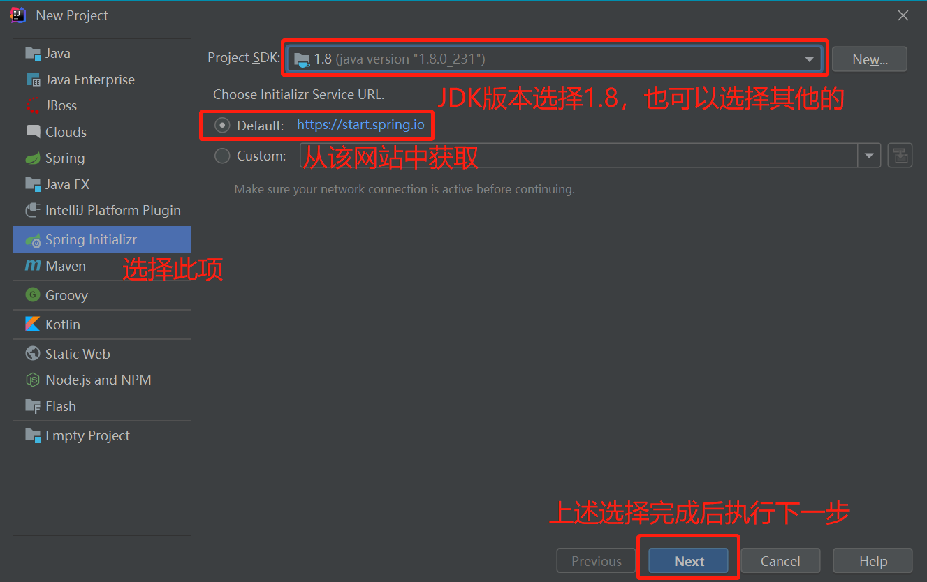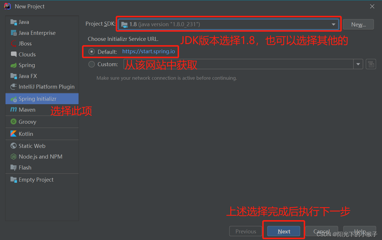 首先,创建一个Springboot项目,本文通过IDEA创建,本文详细过程见下图,当然,创建f方式也有其他的,比如通过maven项目构建或者通过https://start.spring.io/进行创建后下载再导入到IDEA中.