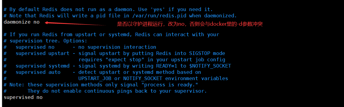 -v /usr/local/redis/redis.conf:/etc/redis/redis.conf ## 容器里的redis配置文件与/usr/local/redis/redis.conf下的配置文件互相通信,(前提准备好redis.conf),这样每次修改不用进入到容器里