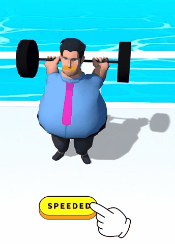 eg:以瘦身游戏为例,互动方式非常简单操作指引由循环动画组成,引导用户点击黄色按钮进行互动。