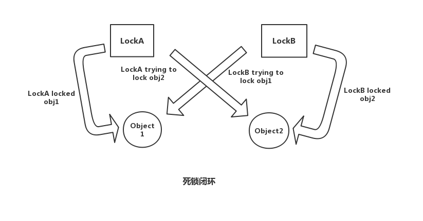LockA trying to lock obj2...死锁原因: