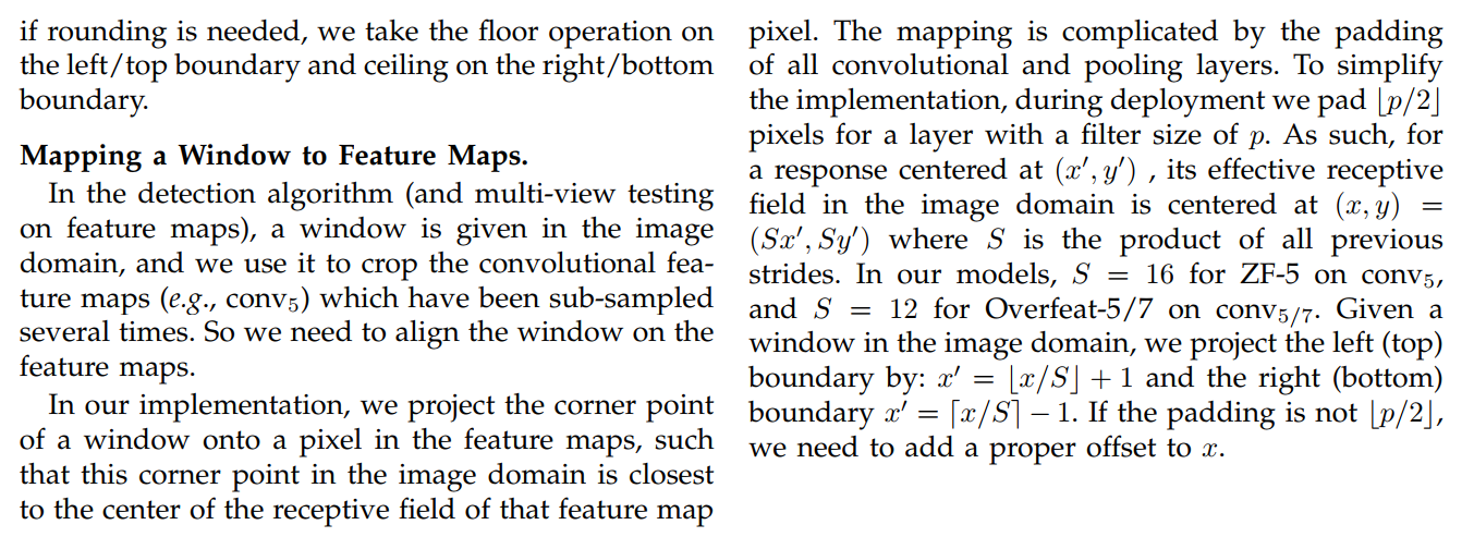 但是问题又来了,这个anchor不是在最后一层feature map上滑窗获得的吗,怎么和groundtruth算IoU?其实理解这个问题需要理解一个关键概念“ROI Projection”,这个概念不是我自己造的,是在SPPnet这篇文章的最后附录里提到的一个概念: