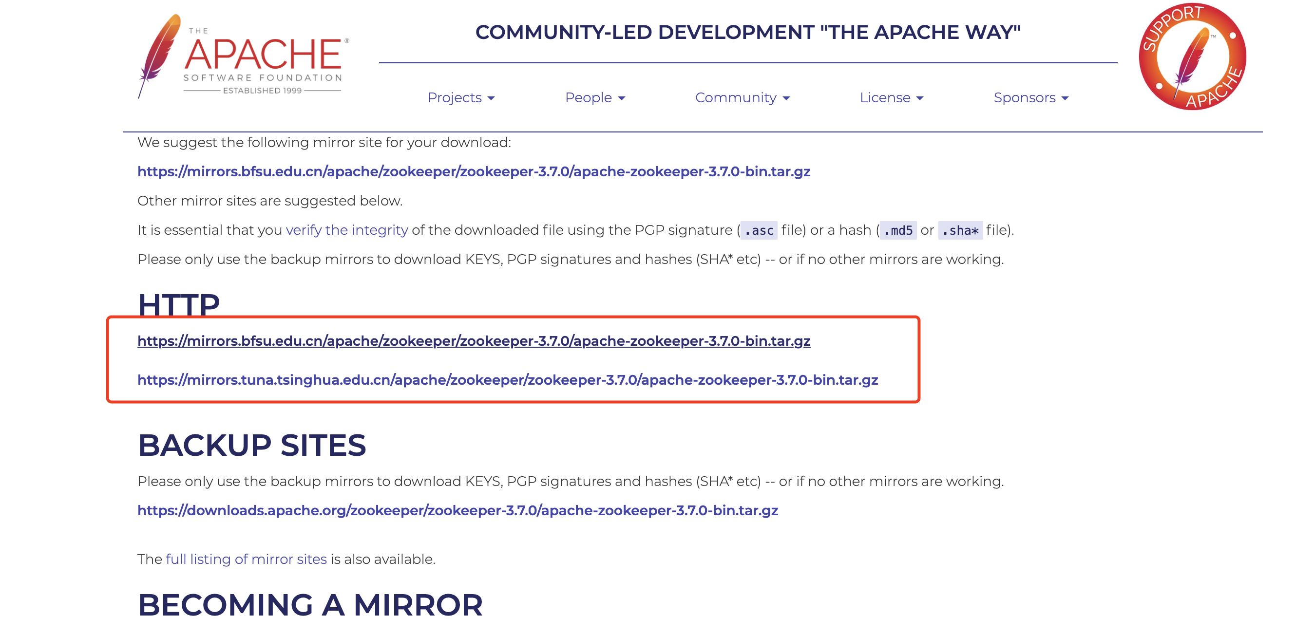 zookeeper官网:https://zookeeper.apache.org/ ----》download---->选择版本号------》选择镜像,下载,然后上传到服务器中