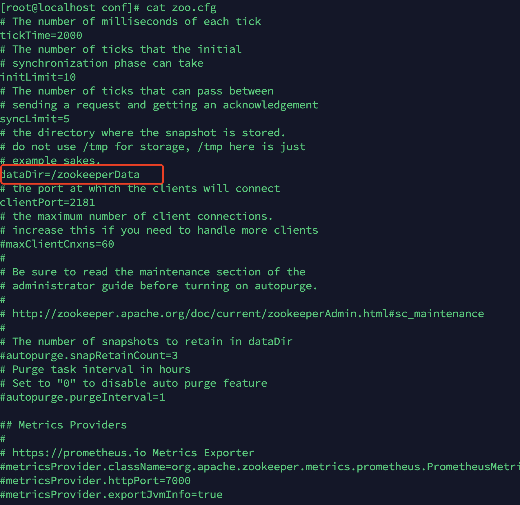 [root@localhost conf]# cp zoo_sample.cfg zoo.cfg