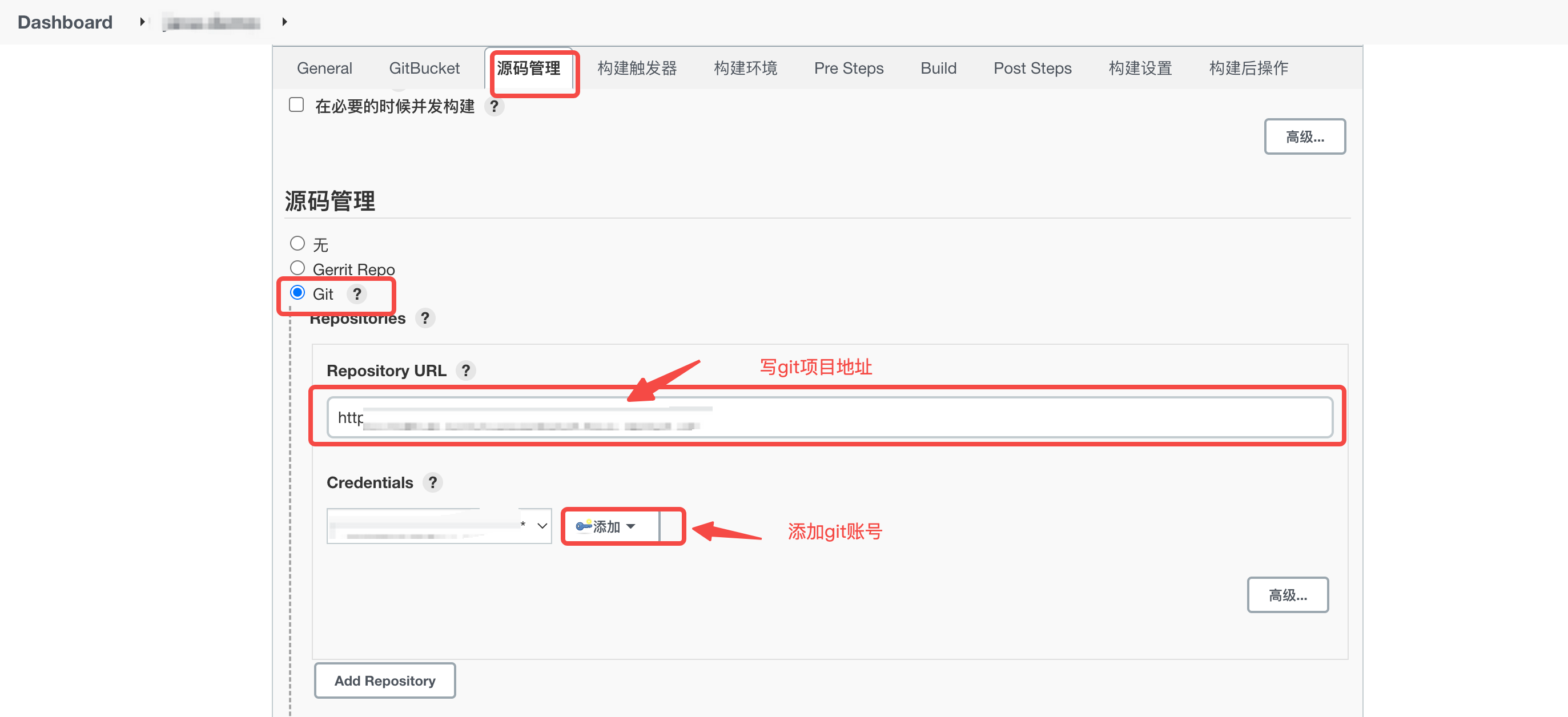注:填写git地址时有时会报错,可能是git插件没装,或者是地址错了,需要检查一下 !!!!!!