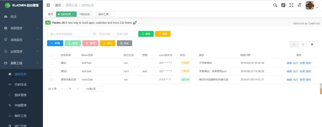 定时任务:整合Quartz做定时任务,加入任务日志,任务运行情况一目了然
