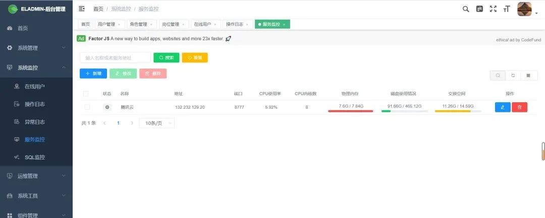 用户管理:提供用户的相关配置,新增用户后,默认密码为123456