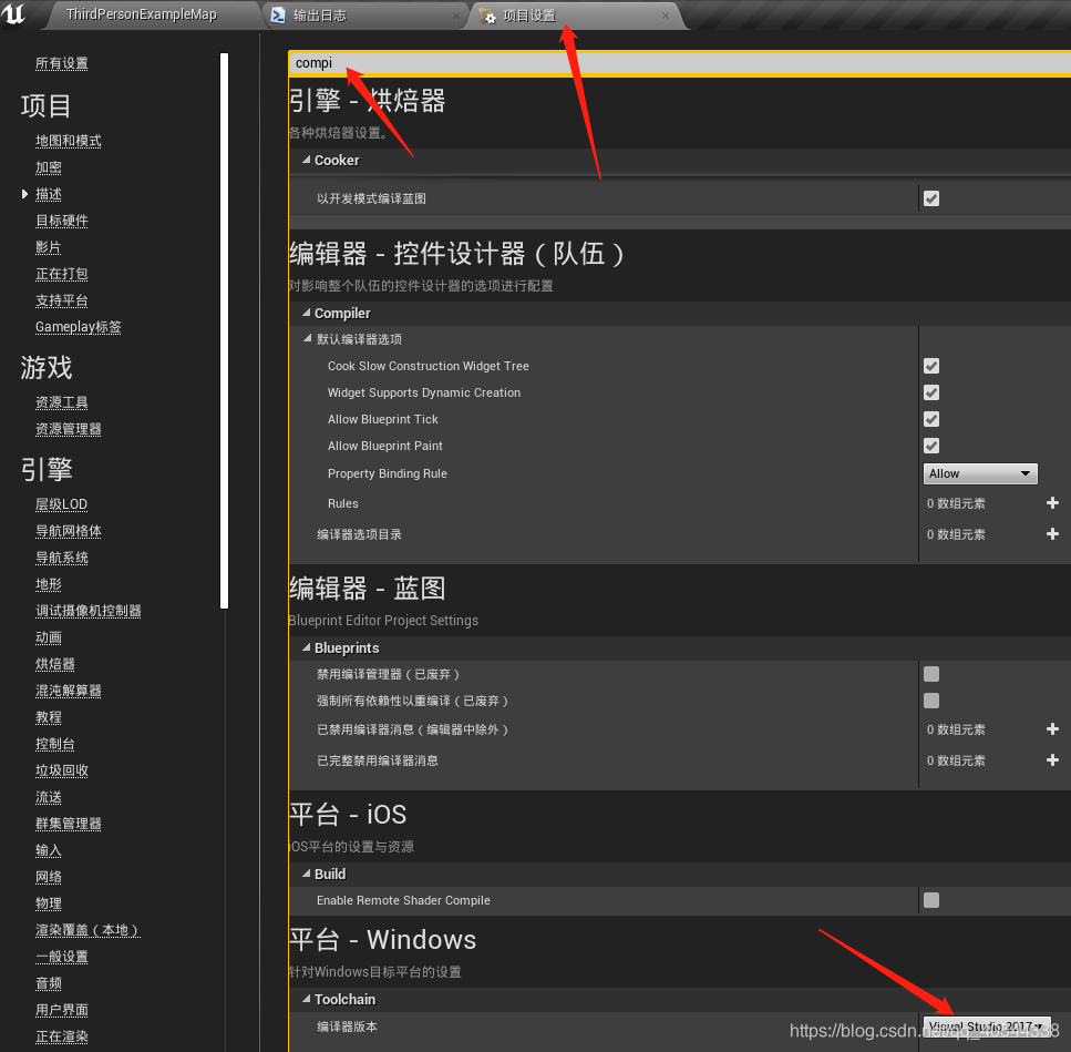 1、进入UE4后一定要设置默认的VS编辑器,因为发现如果使用VS2015打开过,VS2017打开会出现点问题