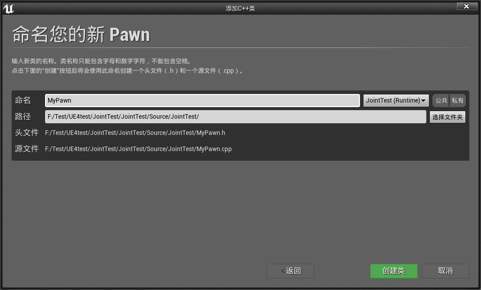 1、创建UE4,名字叫做:JointTest