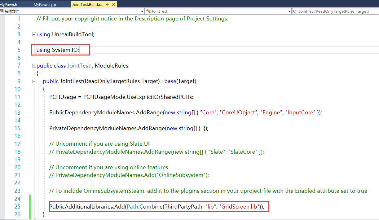 1、代码:JointTest.Build.cs
