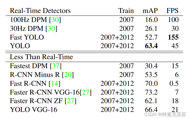 因此图中可以看出YOLO以及Fast-YOLO的检测速度都达到了实时检测的水平,且mAP也处于偏高的水平。