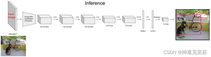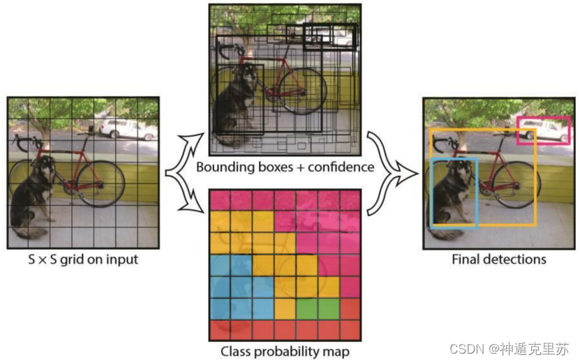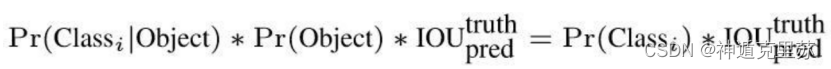 (其中Pr(Object)和IOU是训练时的信息,模型要朝着这个方向去训练,训练完后再测试时直接输出confidence,不会知道其中Pr(Object)和IOU是多少)