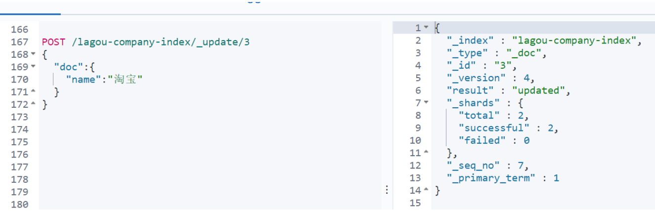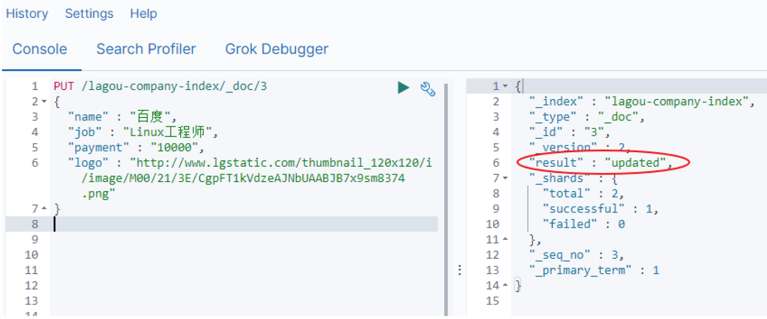 Elasticsearch可以使用PUT或者POST对文档进行更新(全部更新),如果指定ID的文档已经存在,则执行更新操作。