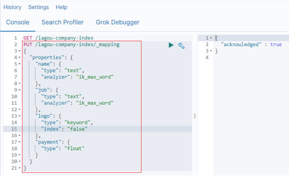 }settings:就是索引库设置,其中可以定义索引库的各种属性 比如分片数 副本数等,目前我们可以不设置,都走默认