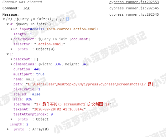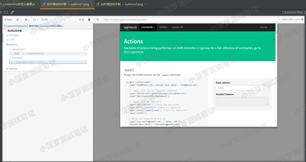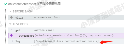 截取被测应用程序的屏幕快照,以及 Cypress 命令日志的屏幕快照