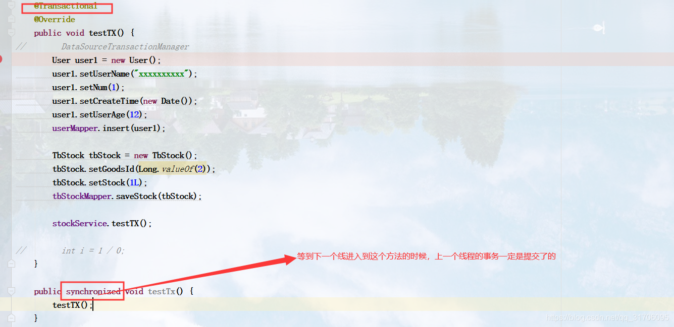 出现该问题的原因:当有多个线程访问该方法的时候,可能第一个线程已经执行完了该方法,但是事务并没有提交,当第二个线程进来的时候,由于第一个线程没有提交事务,那么就读不到第一个线程的插入的数据,此时第二个线程去根据某个条件去判断的时候,判断结果为false,就会再次插入数据,结果等到两个线程的事务都提交了的时候,会出现两条重复的数据。