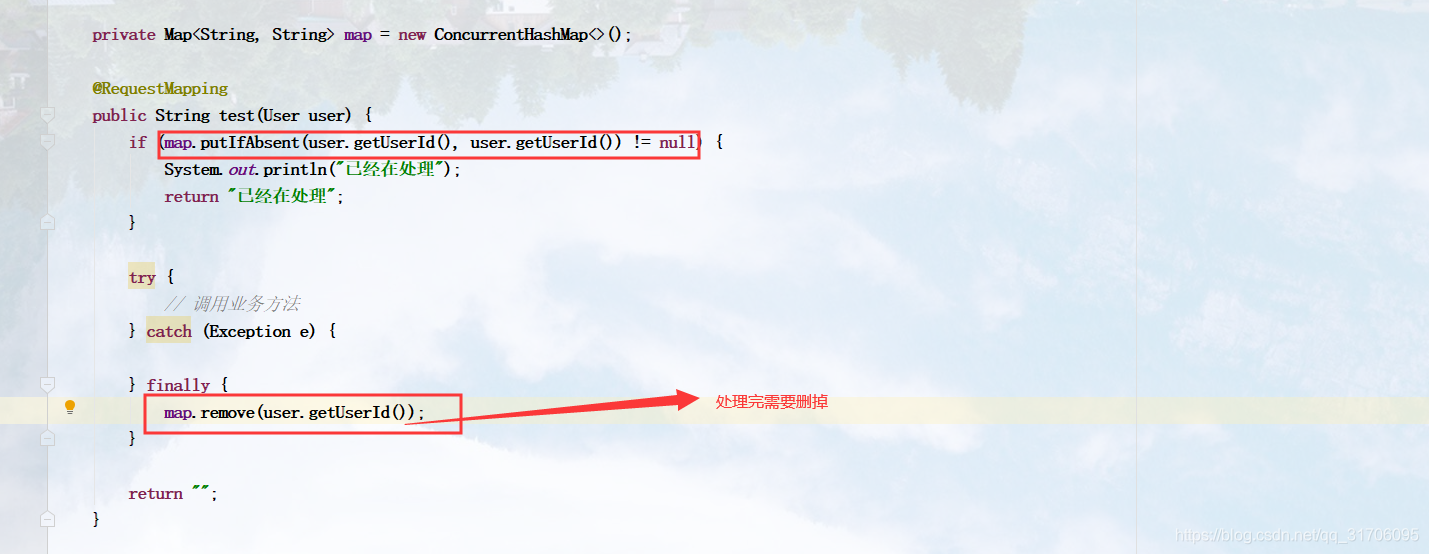 解决方法二:可以再控制层创建一个map,记录当前正在处理的数据,如果当前数据正在处理,则不进入业务方法,等到该条数据处理完了再进去。