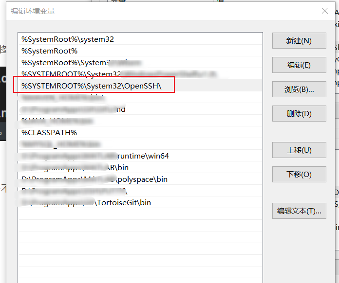 win10默认使用openssh,环境变量配置的也是openssh,但有时候并不好使。这个时候,如果电脑上安装有git,可以使用git的ssh,只要在环境变量中切换成git的ssh即可(网上有相应教程)