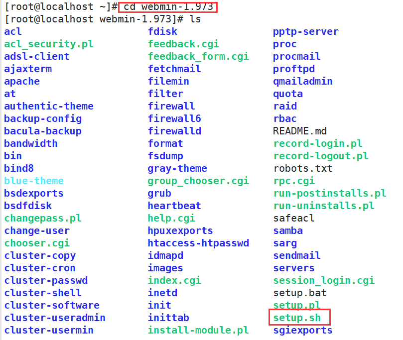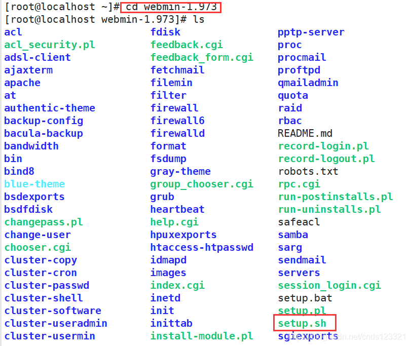 使用cd命令进入到webmin目录下,找到setup.sh文件