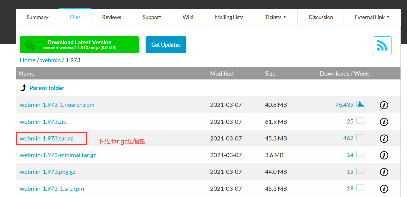 执行tar -zxvf webmin-1.973.tar.gz命令解压缩