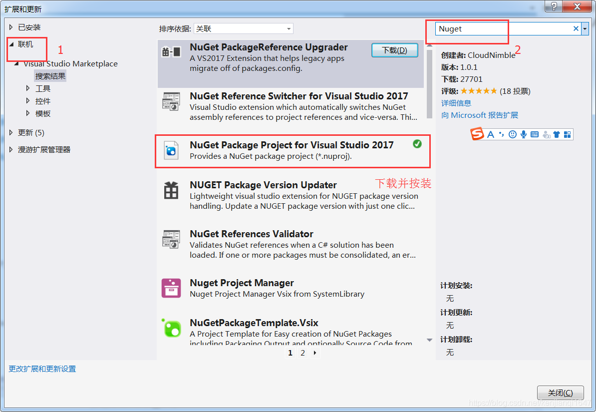 (2)搜索并安装NuGet Package Project