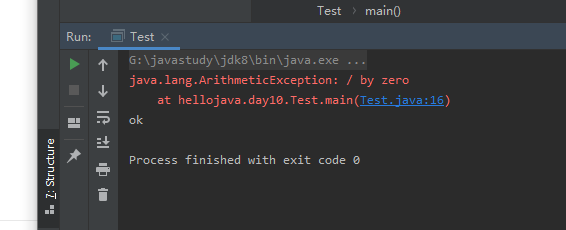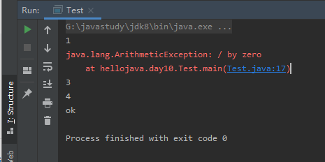 //在捕获代码块中try()如果前面的代码有异常了就不报了