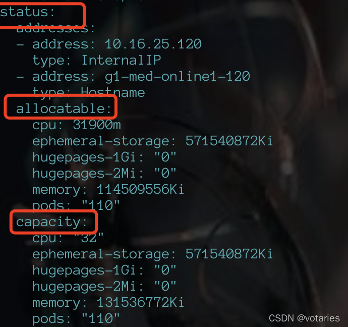 capacity:节点一共有这些资源 去除不能分配的资源就是allocatable