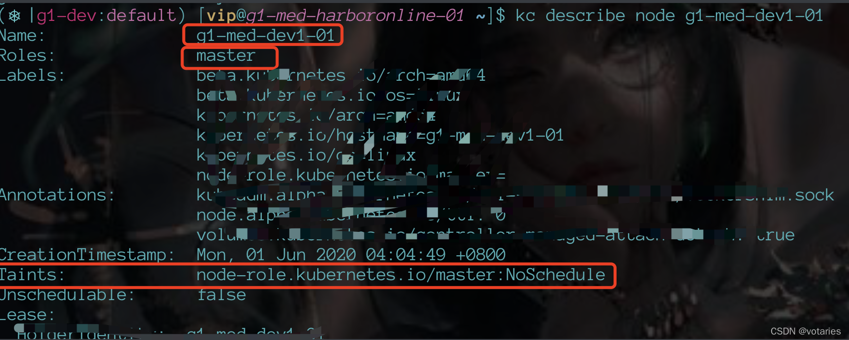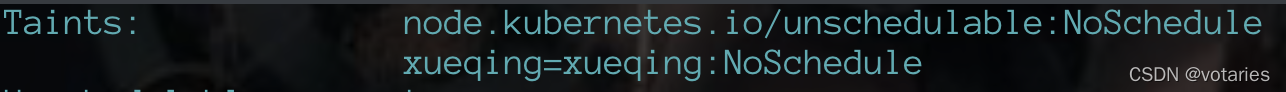 首先先在配有GPU的node1中添加Taints污点(gpu = true),NoSchedule表示只要没有对应Toleration的Pod就不允许调度到该节点。