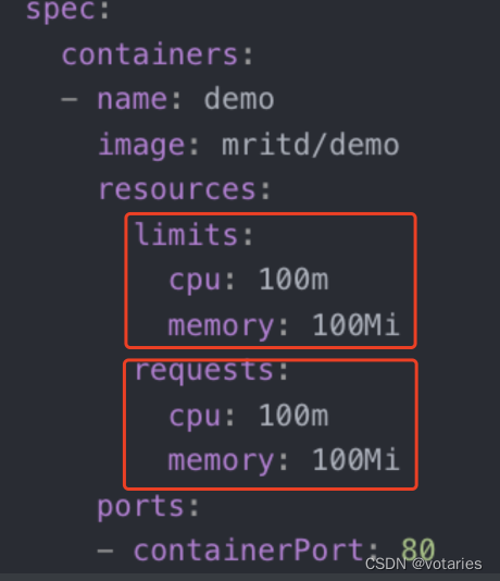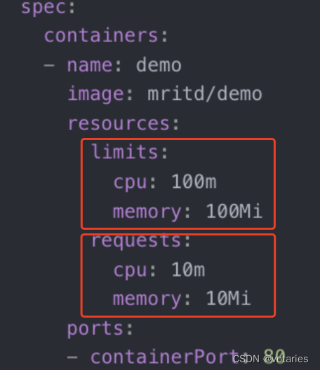 requests :调度器调度时参考的值,一个应用至少需要这么多资源才能起来 调度的时候只看这个部分,调度后,节点会把这部分资源从节点剩余资源中扣除掉