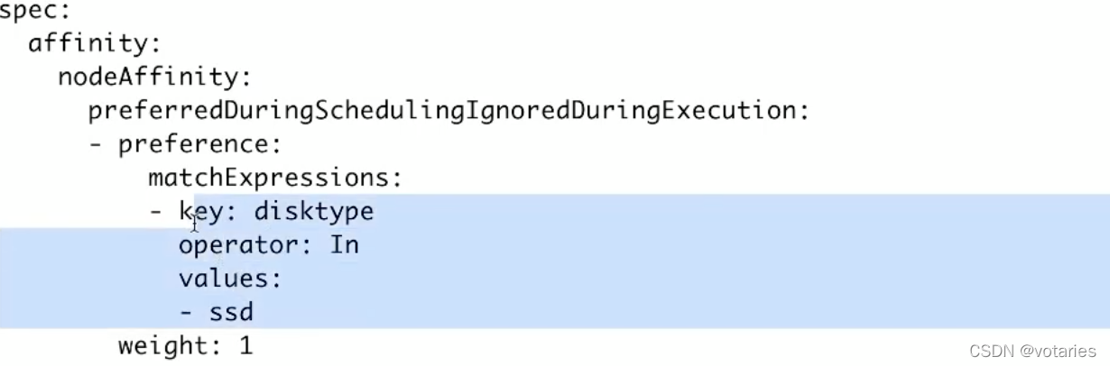 preferredDuringSchedulingIgnoredDuringExecution(软亲和):pod资源被优先部署到满足条件的节点上,如果没有满足条件的节点,则从其他节点中选择较优的节点