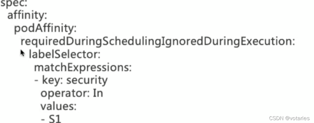 requiredDuringSchedulingIgnoredDuringExecution(硬亲和):Pod必须被部署到满足条件的节点上(与另一个pod资源对象互斥)如果没有满足条件的节点,则pod资源对象创建失败并不断重试。