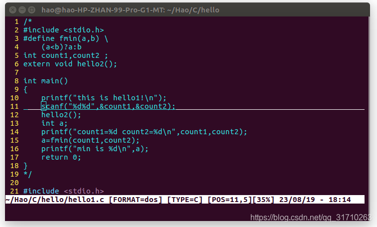 "set nu " 显示行号