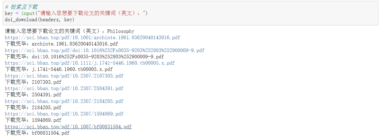 doi_download(headers, key)以Philosophy(哲学)为例,运行结果如下: