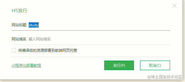 - 打包:发行选择网站pc就是h5的打包了