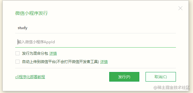 打包发布我好像直接在微信开发者工具那边操作的,感觉这样更简单一点。打包代码也不用复制来复制去了。当然了过程还是要讲的,具体使用还是看个人吧。点击 “发行” => “小程序-微信”,输入小程序名称和appid点击发行就行了。打包后的文件在unpackage/dist/build/mp-weixin 目录中。