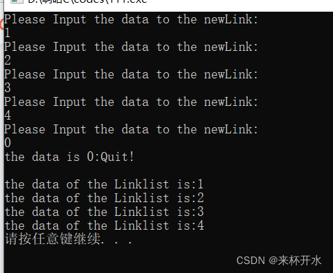 printf("the data is 0:Quit!\n");
