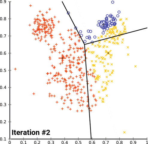 - k-means算法属于硬聚类,每个样本只能属于一个类(软聚类:GMM和模糊K-means)