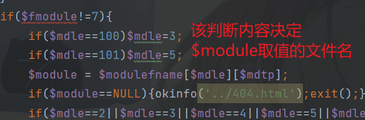 为什么fmodule要等于7?可以通过分析代码中关联的$module变量中文件内容分析,如果不加fmoudle=7为什么没有反应?