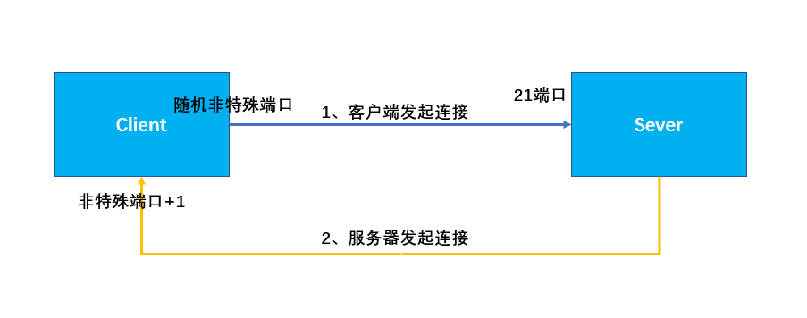 1、 客户端以随机非特殊端口连接服务端的21端口