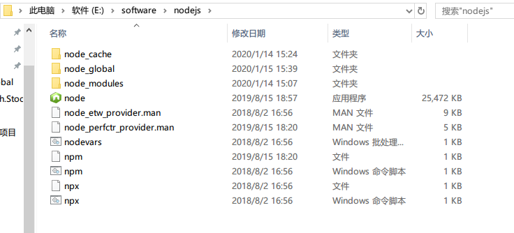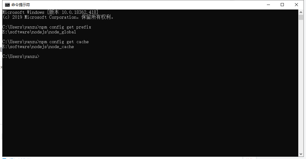 npm config set prefix "E:\software\nodejs\node_global"npm config set cache "E:\software\nodejs\node_cache"