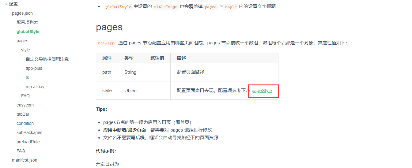 为了设置沉浸式导航栏:点击“pages”,跳进下图位置,再点击pageStyle