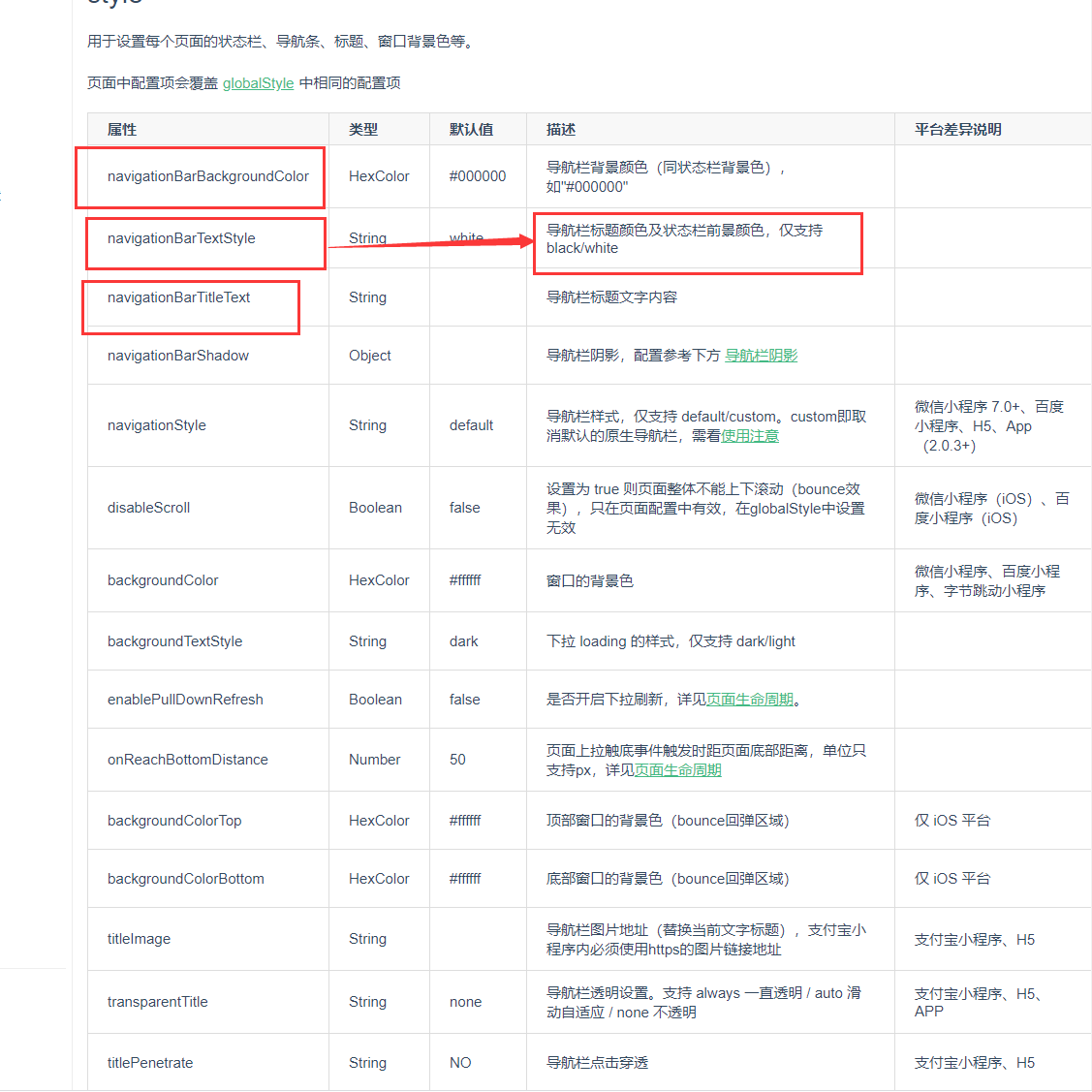 可以看到style,用于设置每个页面的状态栏、导航条、标题、窗口背景色等。