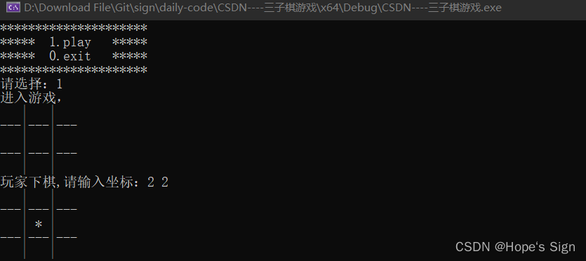 game();//game()函数是三子棋游戏的核心,它是实现三子棋游戏内容的函数