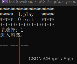 1.1进入菜单选择,选择进入游戏,打印棋盘
