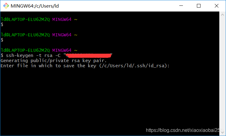 $ ssh-keygen -t rsa -C "你注册时的邮箱号"