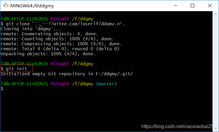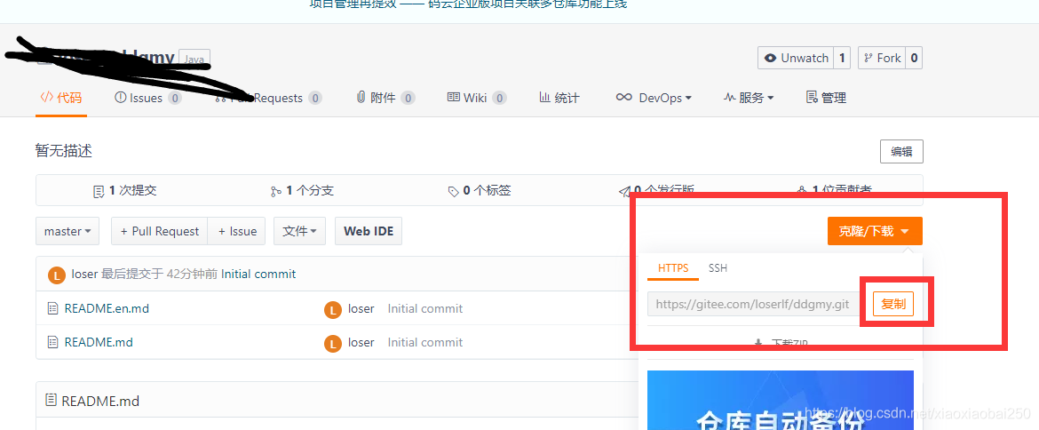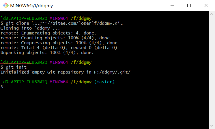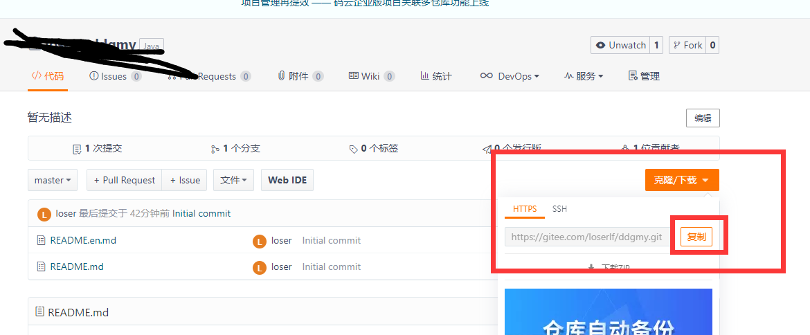 5.2:使用下面的语句克隆下你刚建立的仓库地址