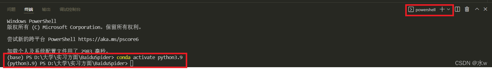 1、在VScode terminal powershell 中执行conda init后重启vscode,此时会有标红的错误信息出现,不用管,直接忽略错误信息进行下一步。