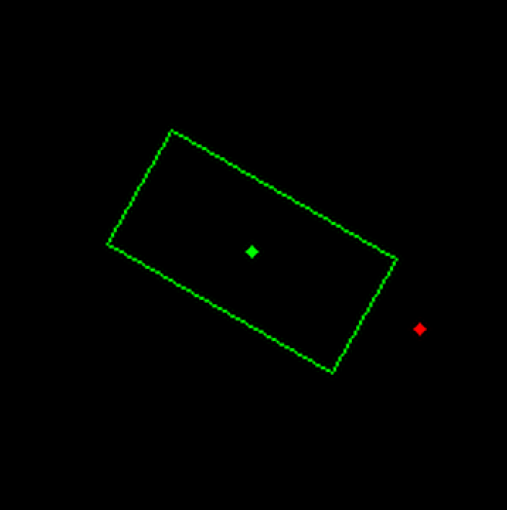 这也就是说,如果我们能够把RotateRect类的对象表示成轮廓,就可以直接调用pointPolygonTest()来进行分析了点的相对位置了。