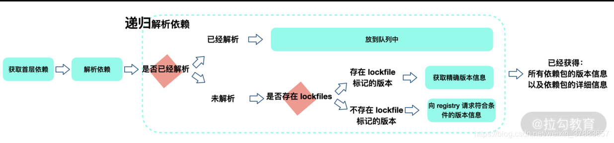 - 解析包(Resolving Packages):这一步会解析依赖树中每一个包的版本信息。