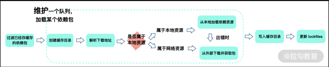 - 获取包(Fetching Packages)这一步我们首先需要检查缓存中是否存在当前的依赖包,同时将缓存中不存在的依赖包下载到缓存目录。