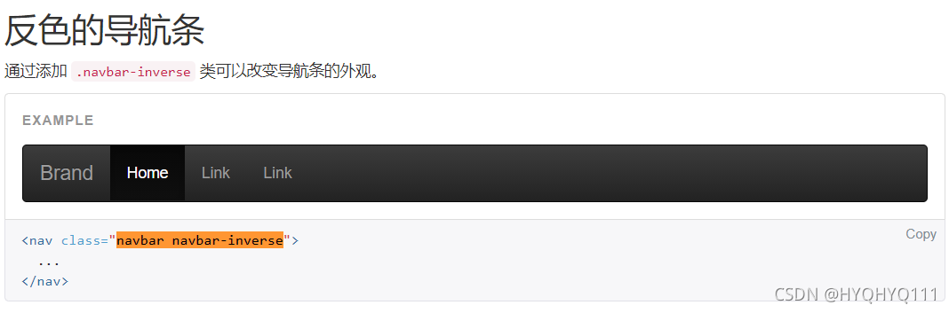 - 第三段,navbar块,这里定义了导航栏,包含两部分: